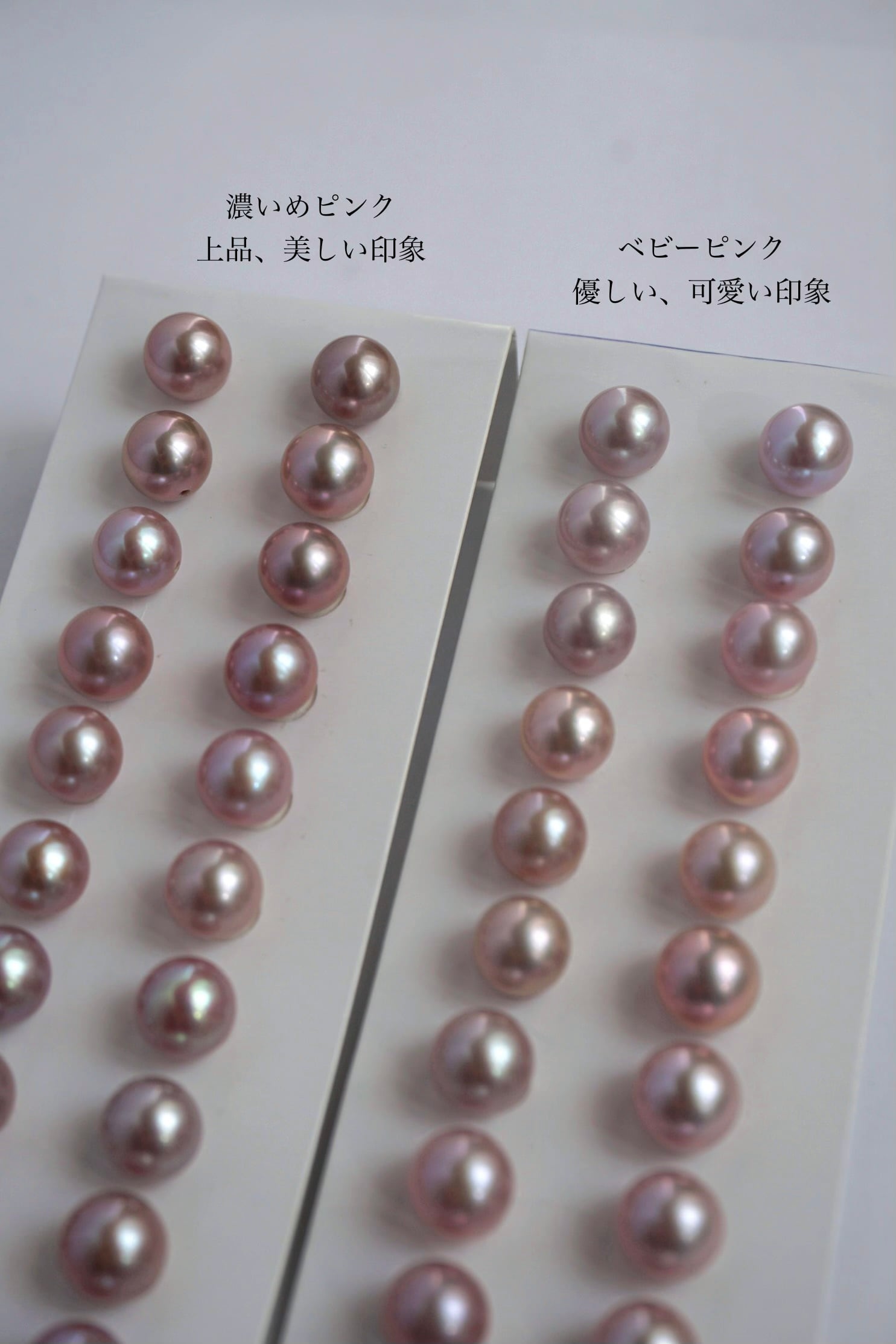 こちらも微妙に色の差がありますので、トップのピンクパールに合わせて制作させていただきます。