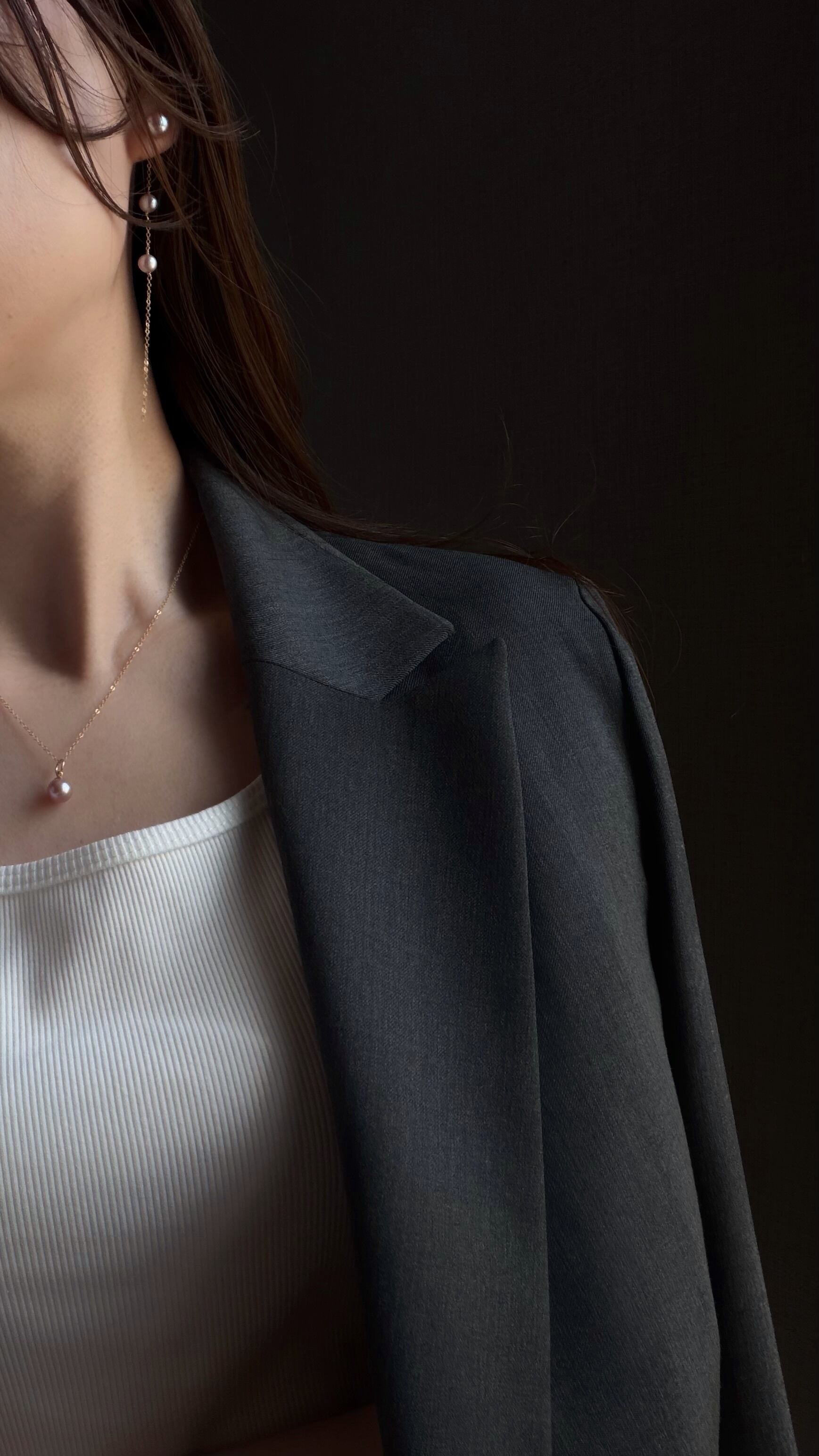 左右でパールの位置を変えているので、動くたびにリズムのある華やぎが生まれます。