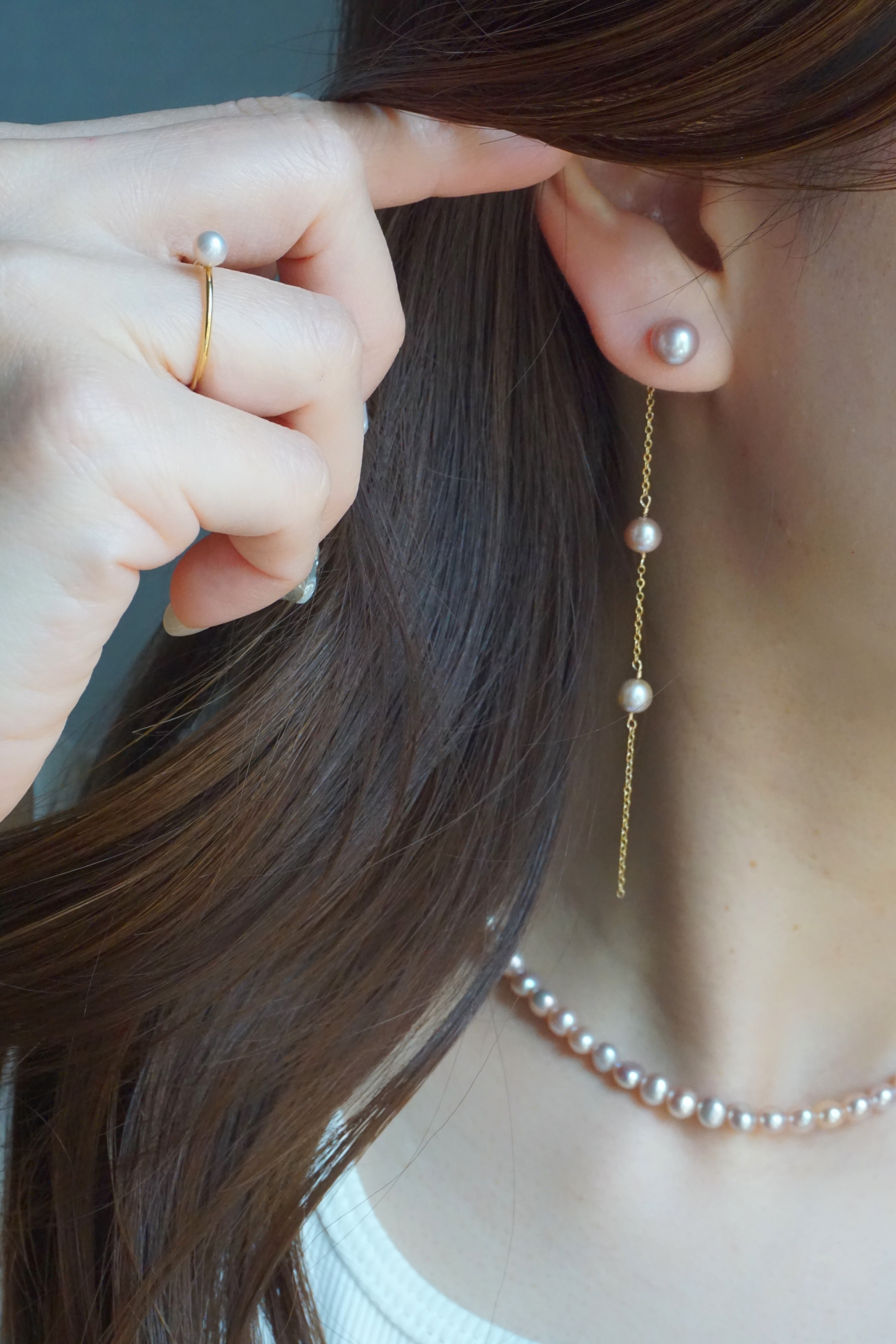 14kgfのワイヤーで一粒ずつ丁寧に留めているため、揺れ方はとても滑らかで、耳元に優しく寄り添い、揺れるピアスが好きな方は、お気に召していただけるのではないかと思います。