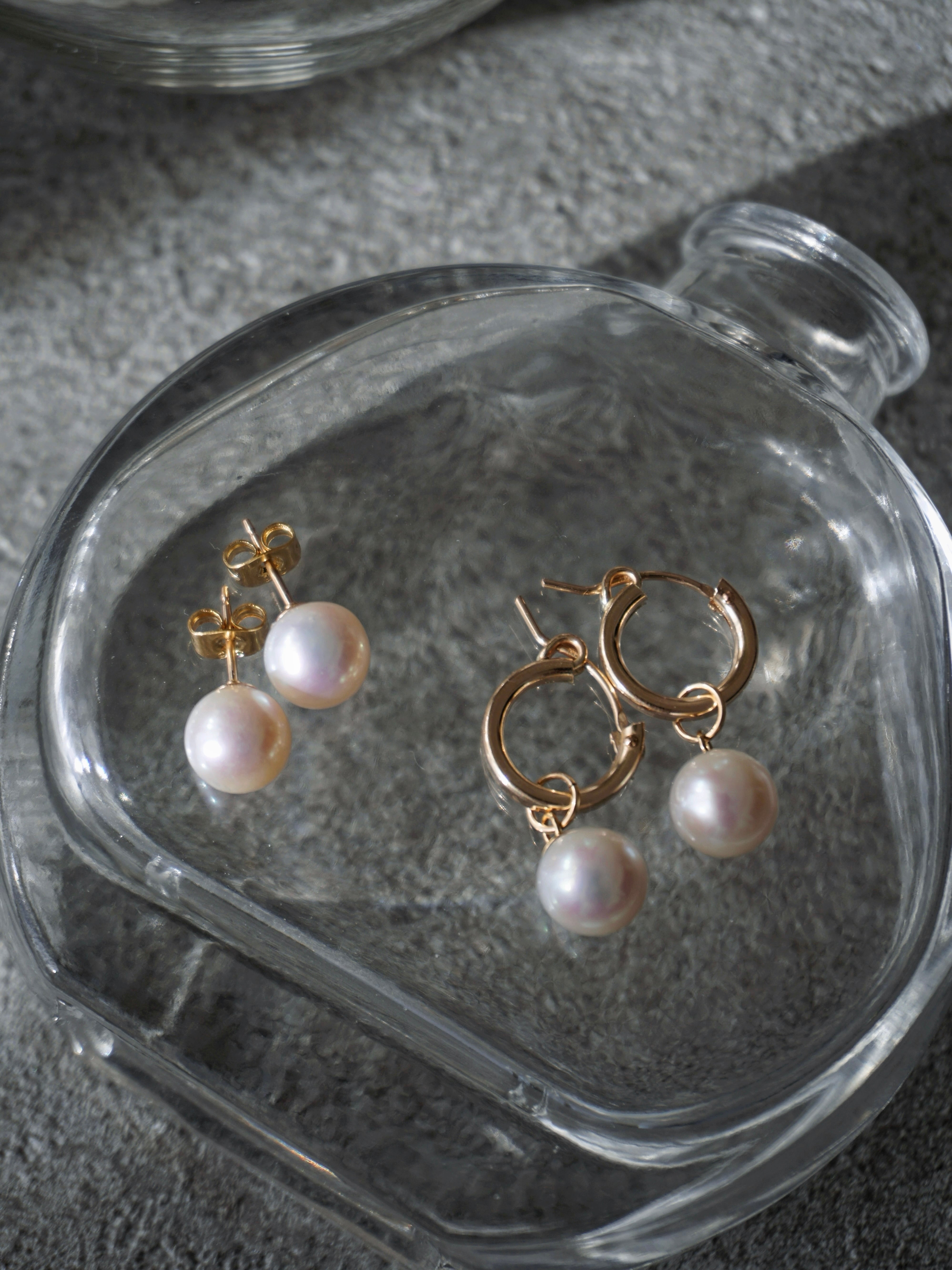 柔らかな光をまとった9mmパールが、耳元に控えめな華を添えるシンプルなイヤーアクセサリー。