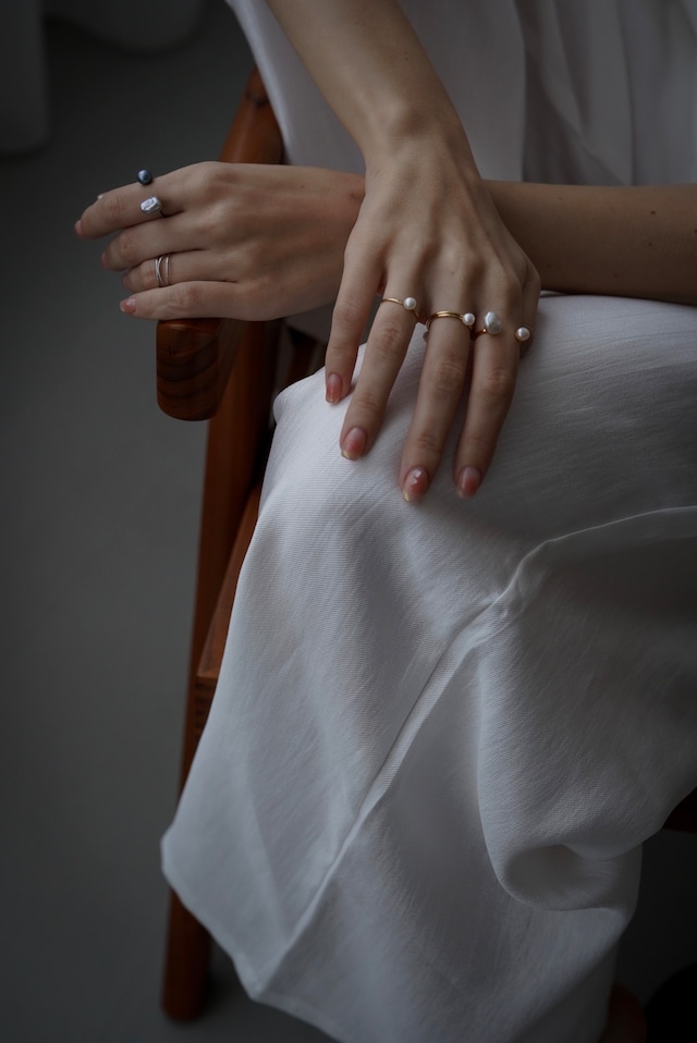リングはサイズ調整が可能で、毎日の気分や指のコンディションに合わせて、心地よく着用できます。