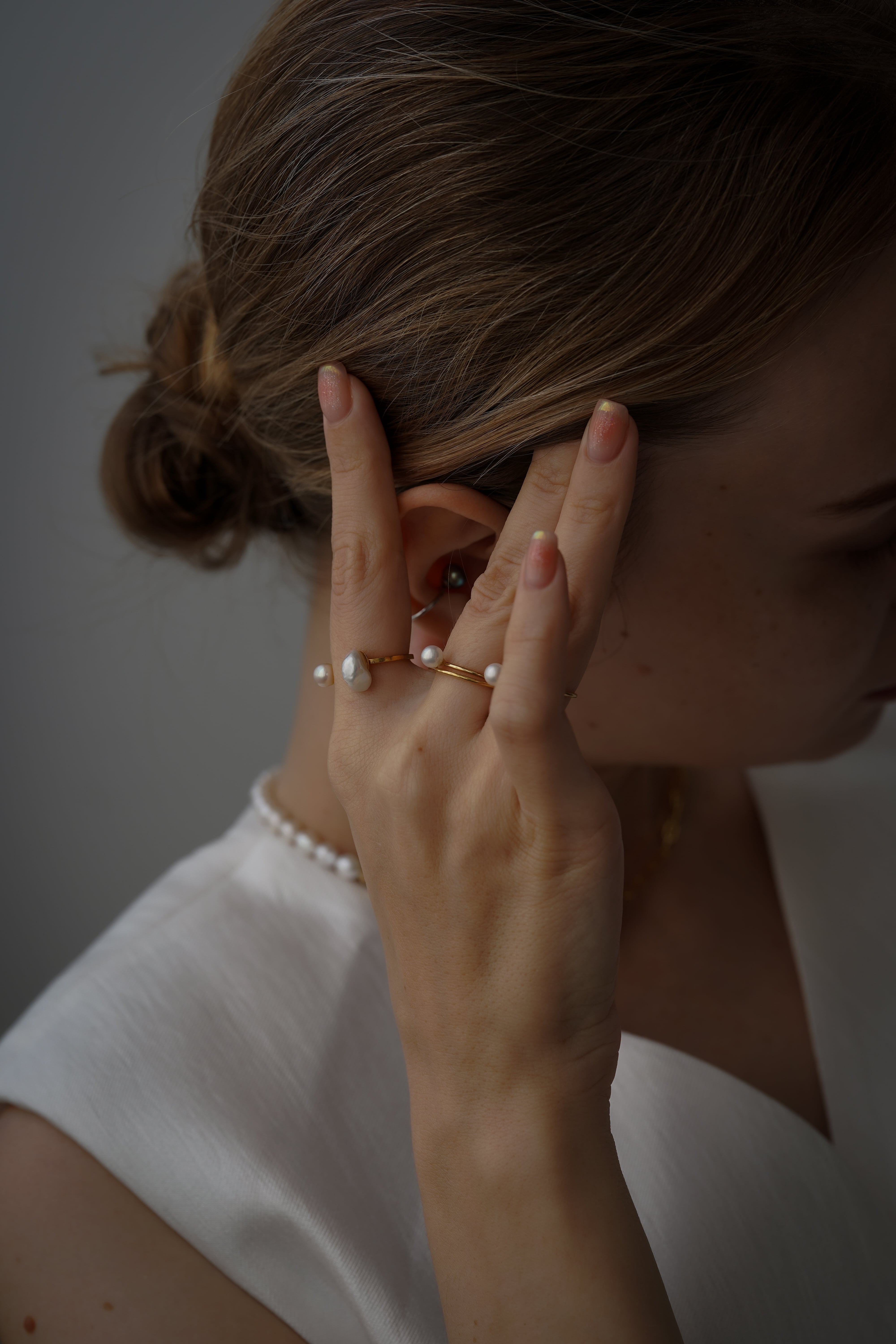 ひと粒のパールがそっと指先に寄り添う、ミニマルで凛とした印象のリング。