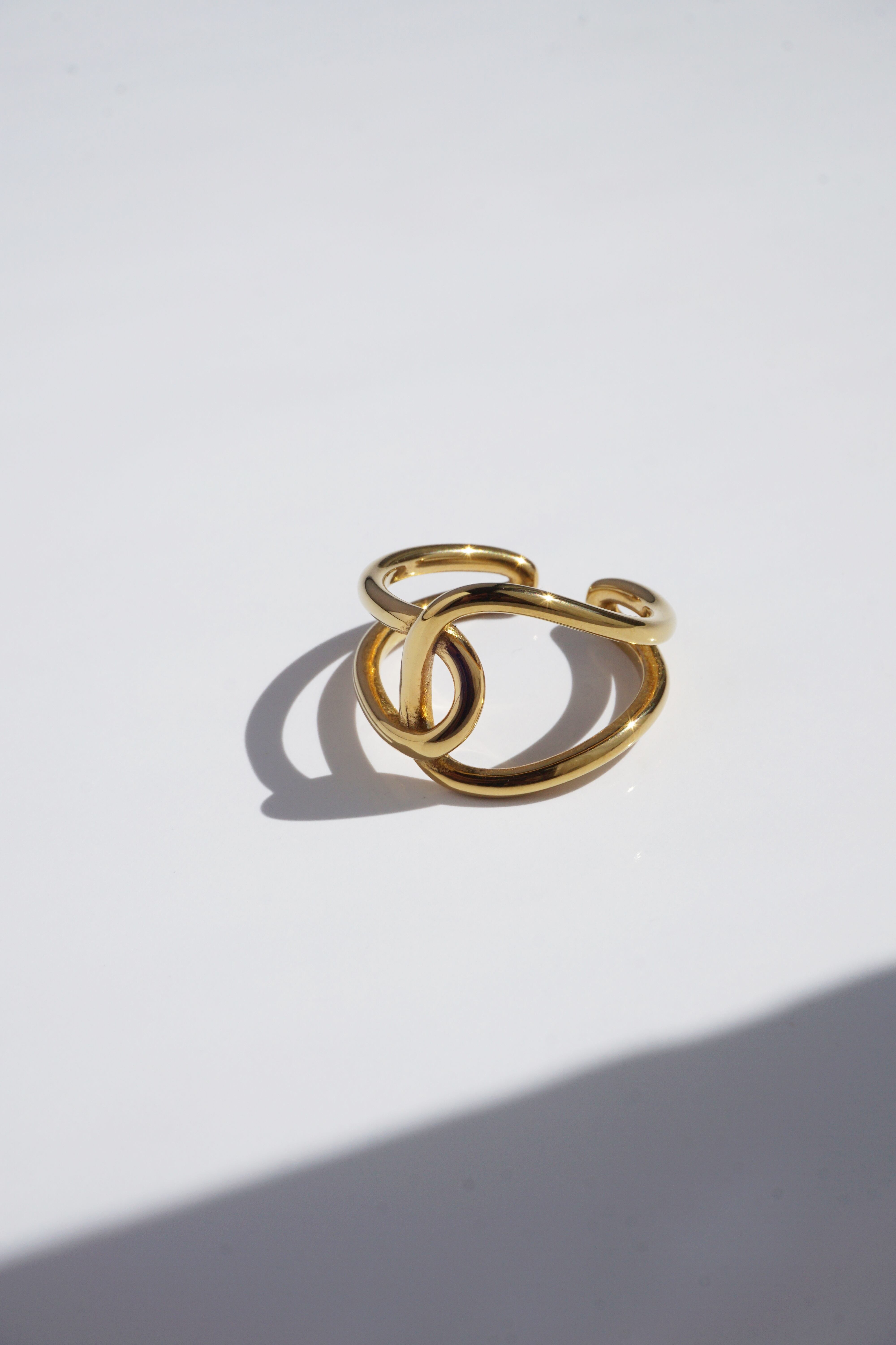 手元で絶妙な存在感を放つステンレス製のザインリング。