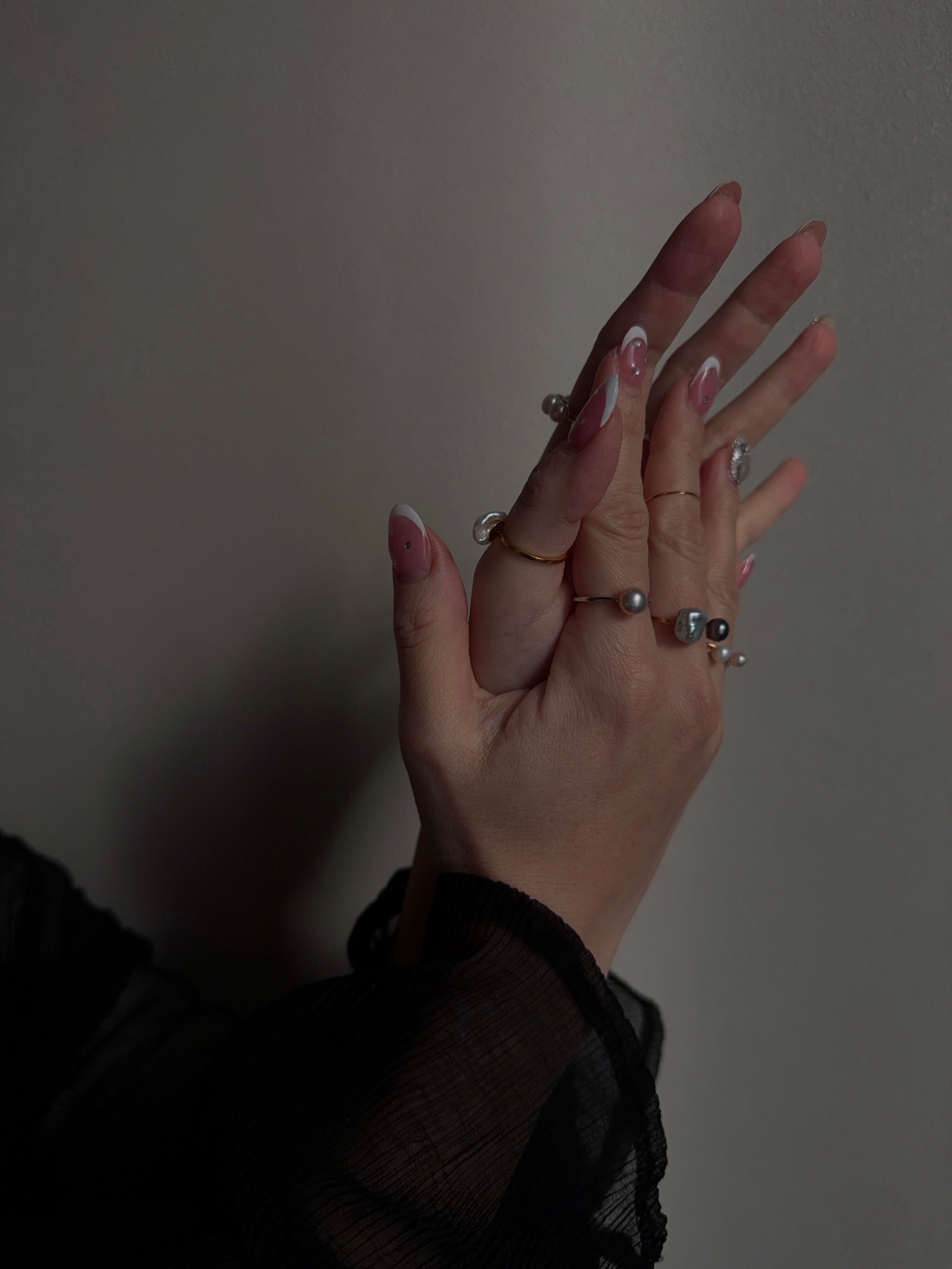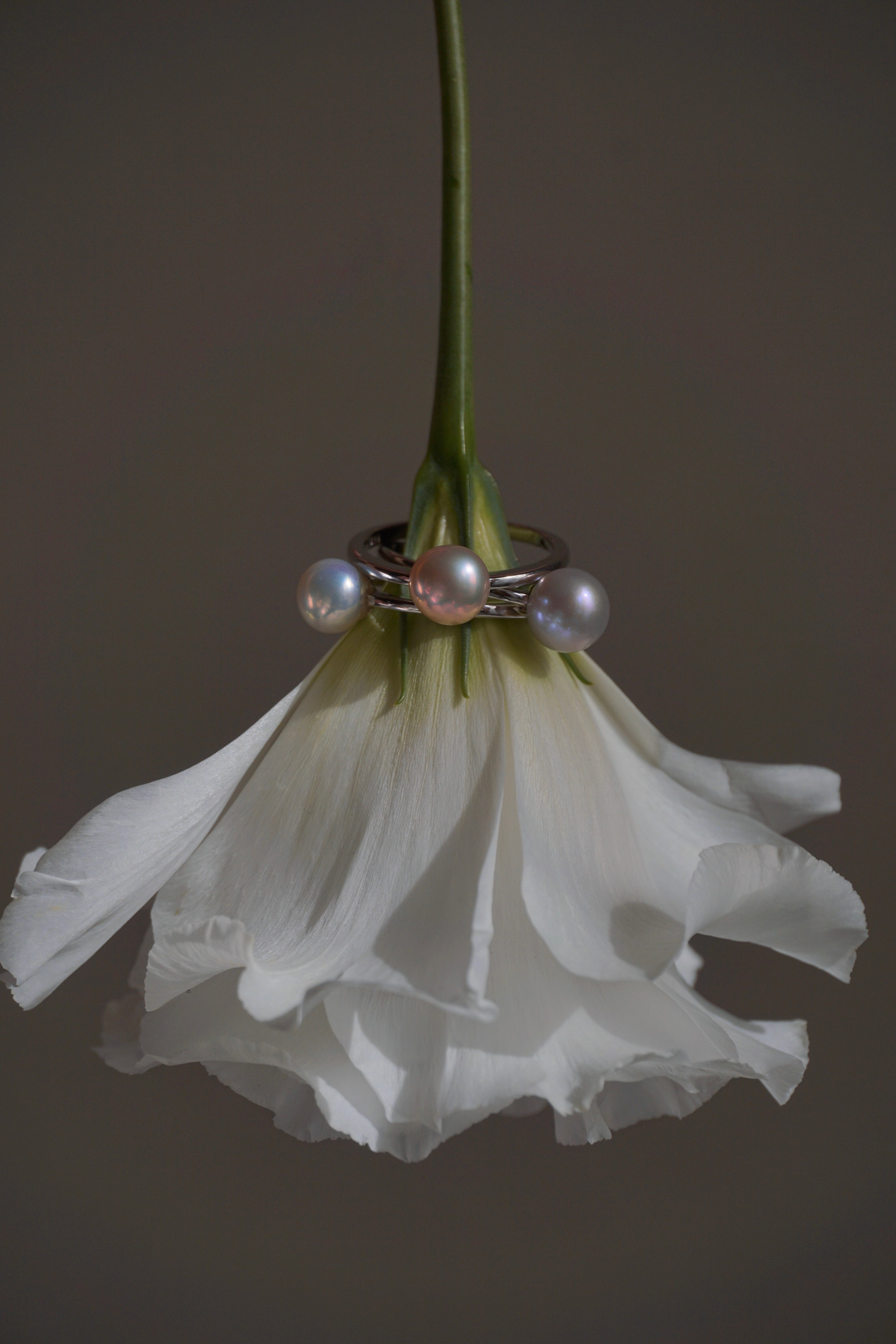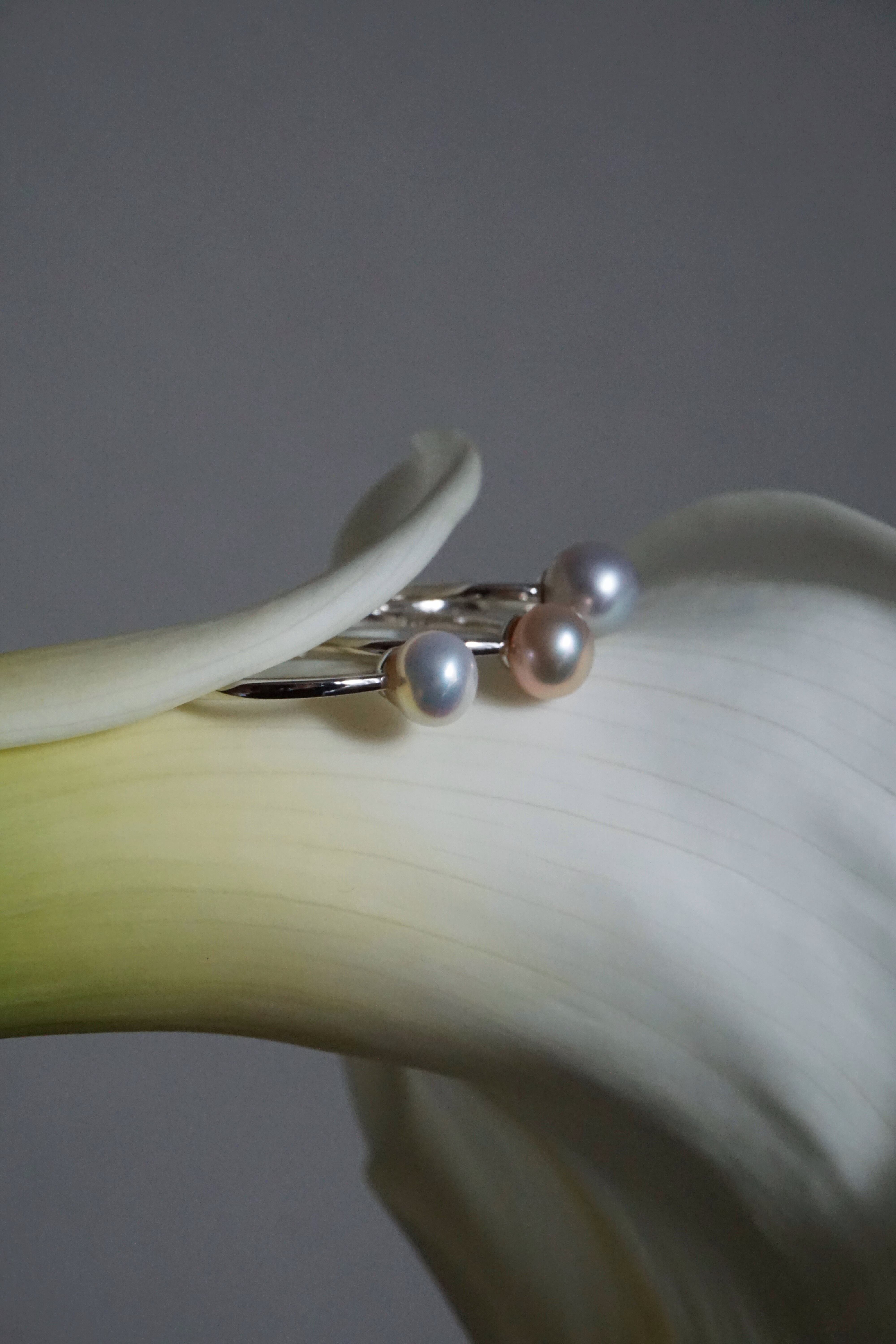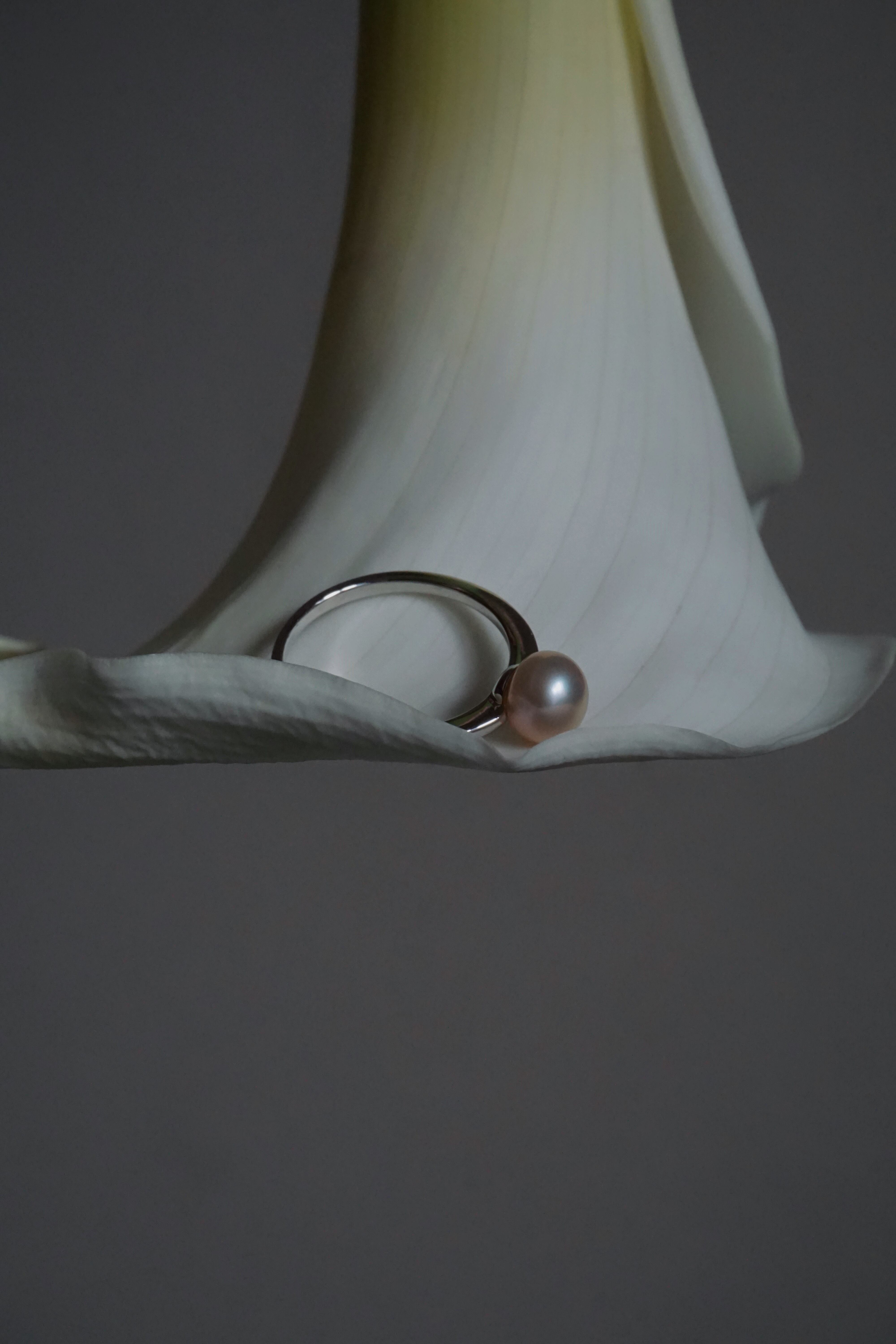 一粒で存在感があり、手元が目に入るたびに頬が緩むような美しさのパールリングです。