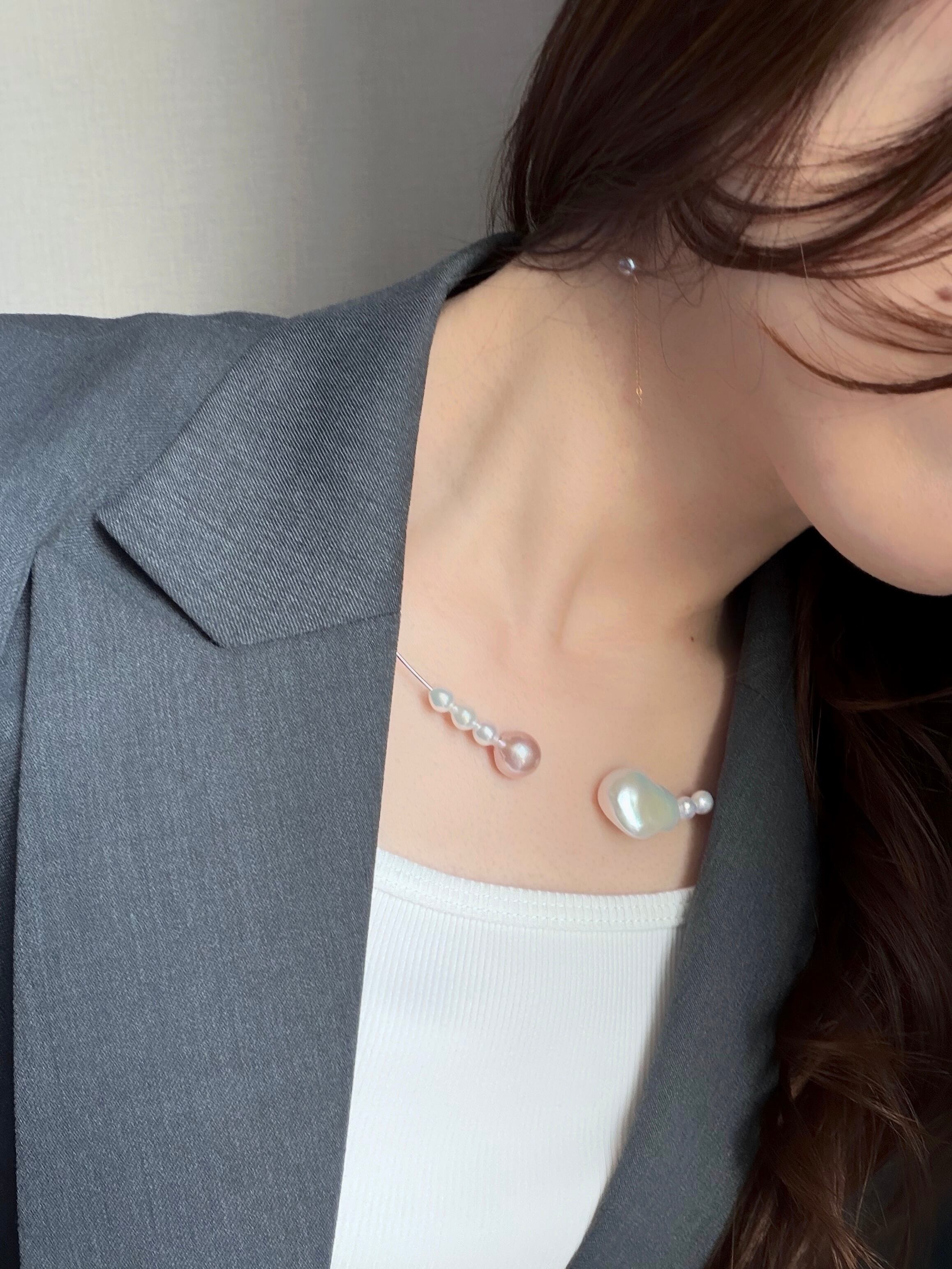 ホワイトパール、ピンクパール共に、淡水バロックパールという個性豊かなパールを使用しております。